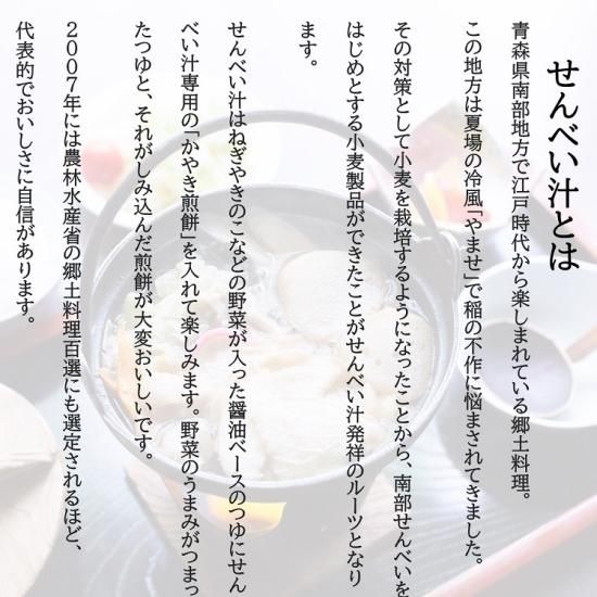 シリーズ商品として、少人数向けにせんべい汁とバラ焼きを1食ずつセットした「青森なんぶのせんべい汁&十和田バラ焼きセット(ミニ)」、そして「「せんべい汁2食セット」、「せんべい汁5食セット」もございます。